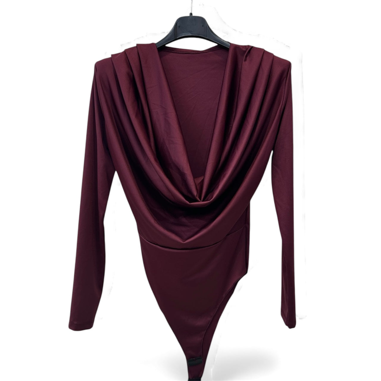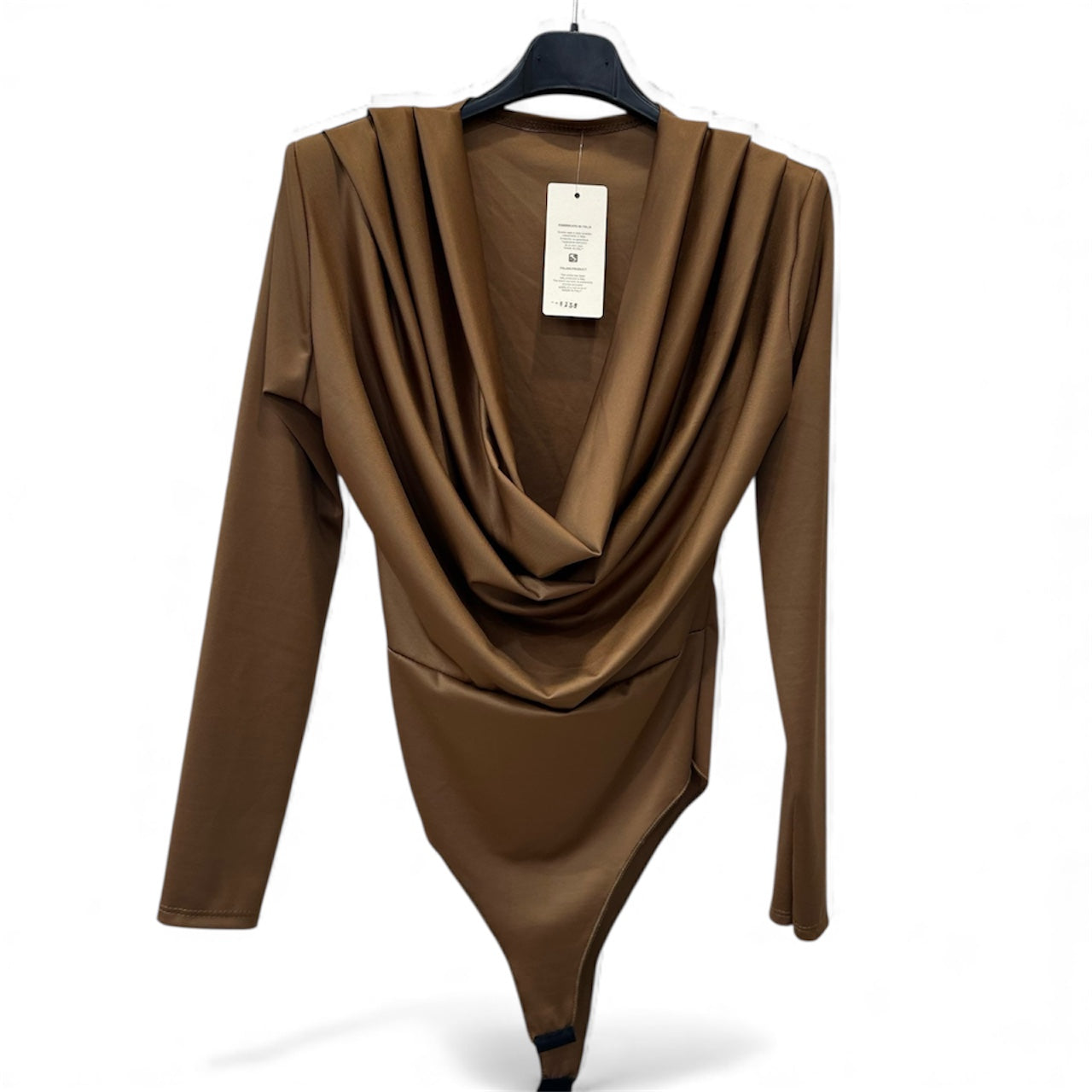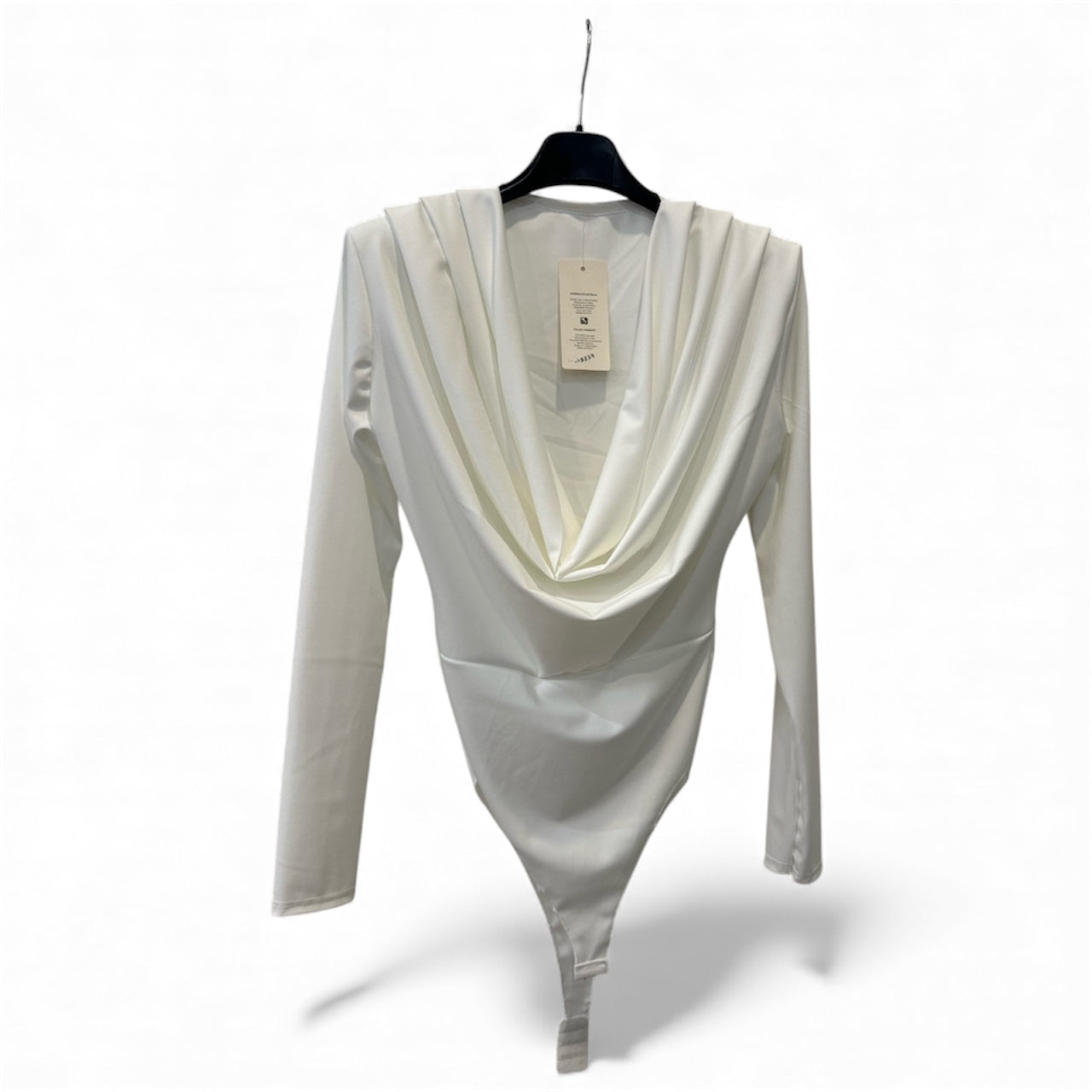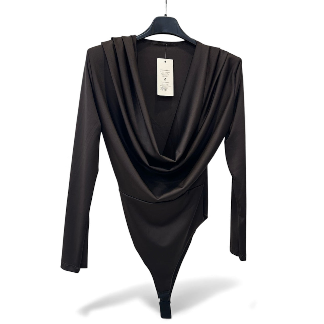 Il body presenta maniche lunghe e un elegante scollo drappeggiato che cade morbidamente sul davanti.Disponibile in diversi colori