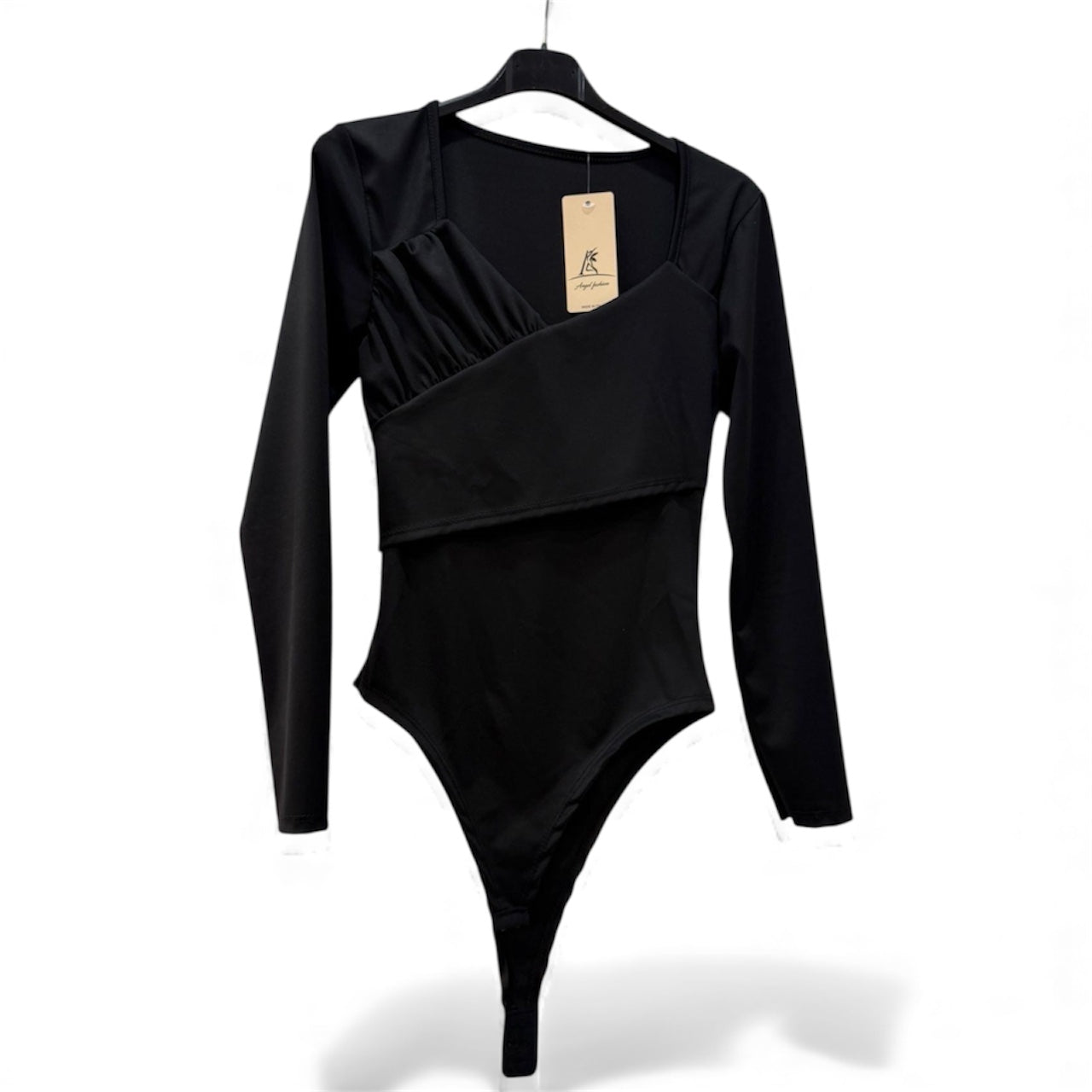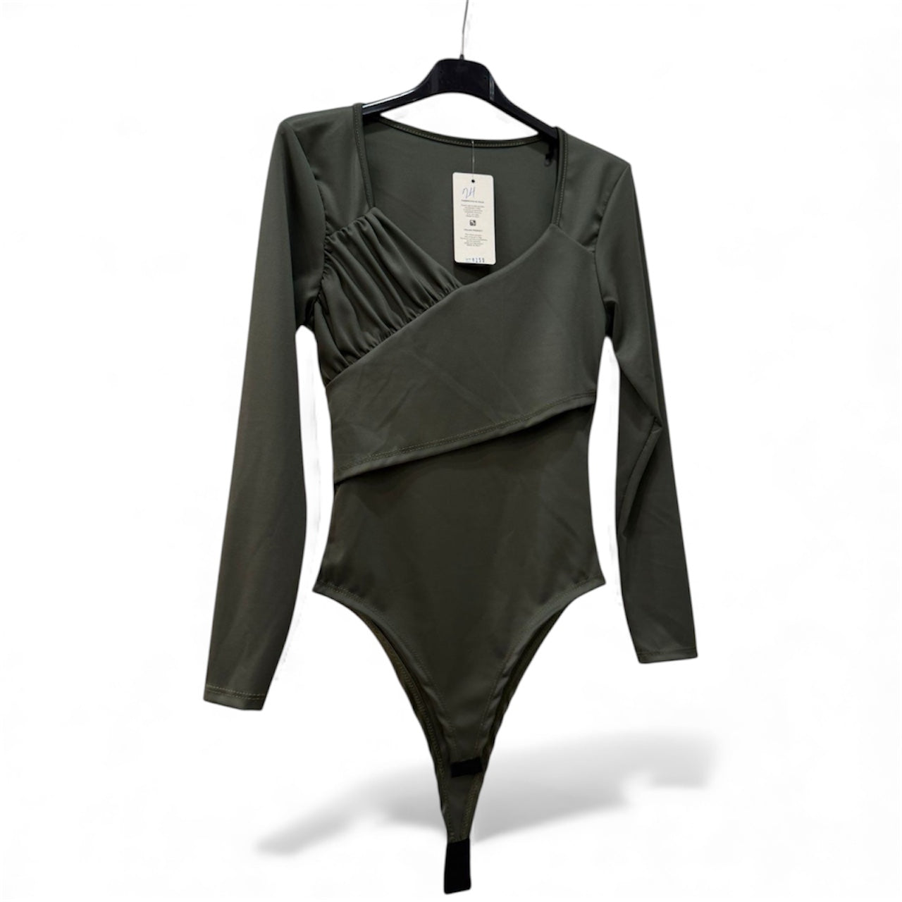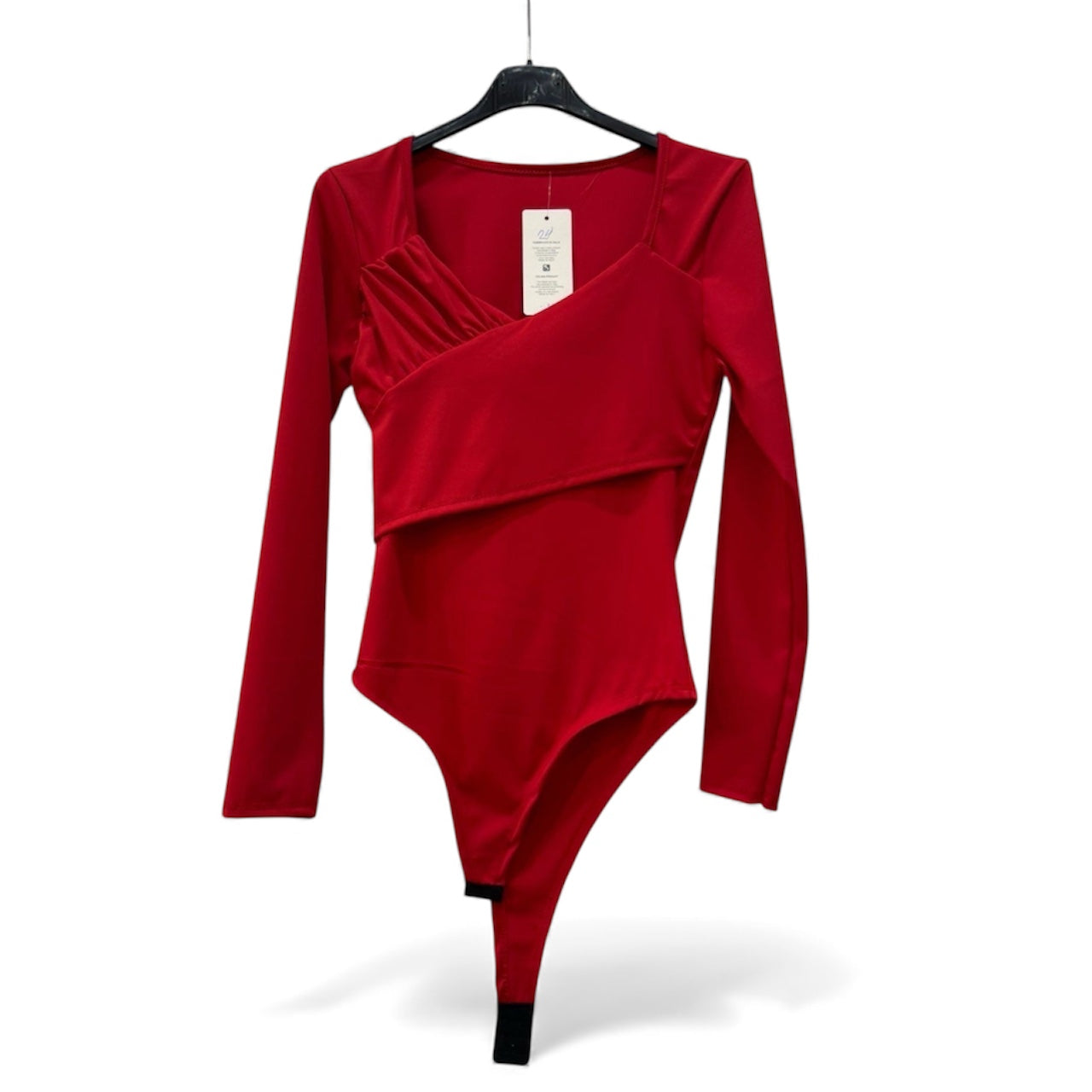 Body minimal ed essenziale, realizzato in morbido tessuto elasticizzato. Presenta una linea aderente che valorizza la silhouette e un delicato drappeggio su un lato, per un dettaglio sofisticato e femminile. Ideale da abbinare a pantaloni, gonne o sotto giacche leggere per un look raffinato e versatile.Disponibile in diversi colori