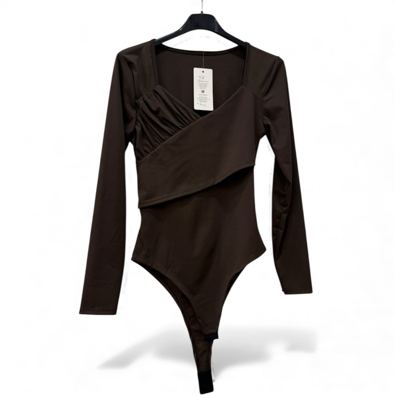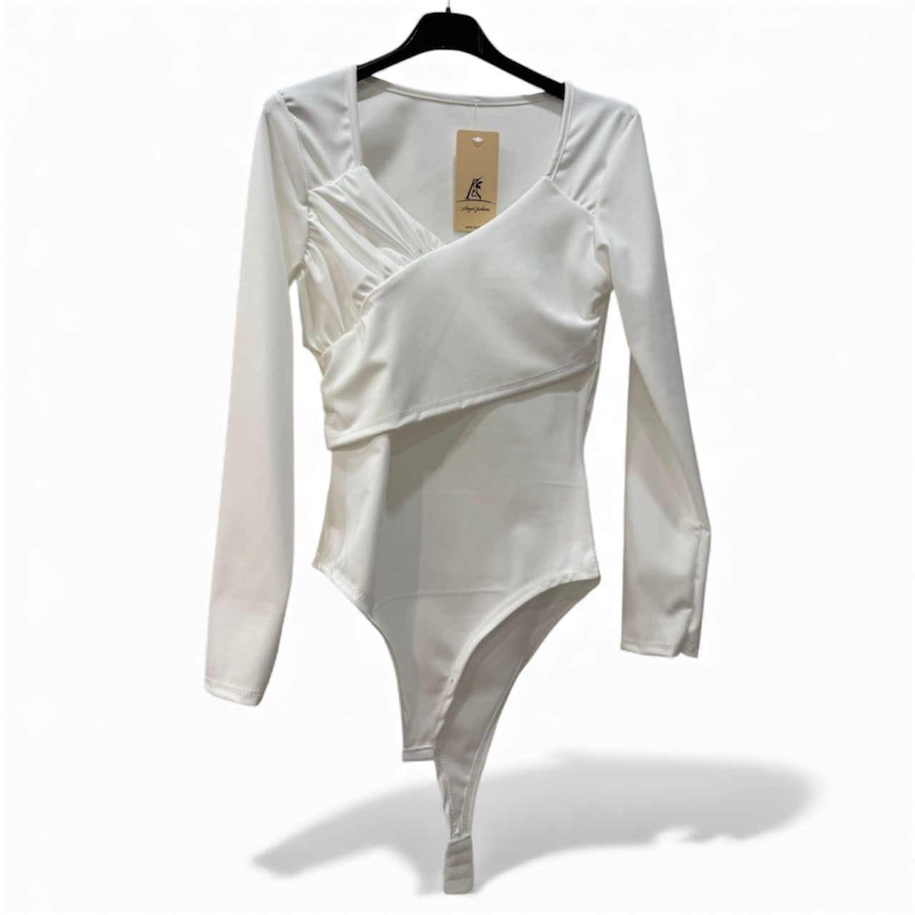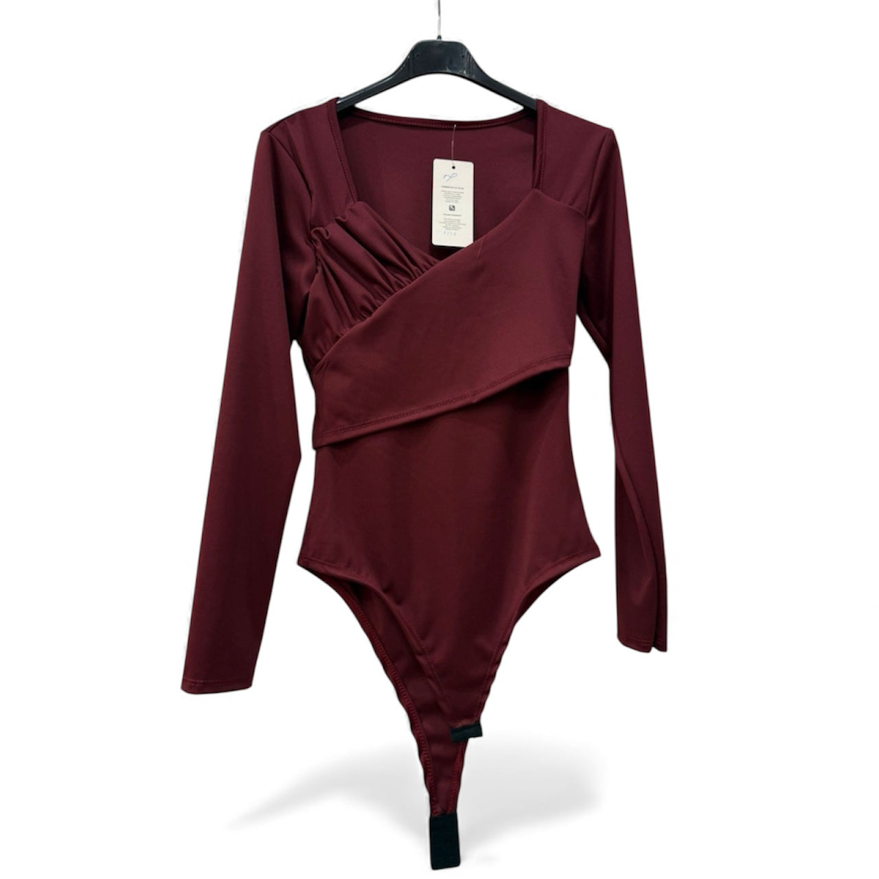 Body minimal ed essenziale, realizzato in morbido tessuto elasticizzato. Presenta una linea aderente che valorizza la silhouette e un delicato drappeggio su un lato, per un dettaglio sofisticato e femminile. Ideale da abbinare a pantaloni, gonne o sotto giacche leggere per un look raffinato e versatile.Disponibile in diversi colori