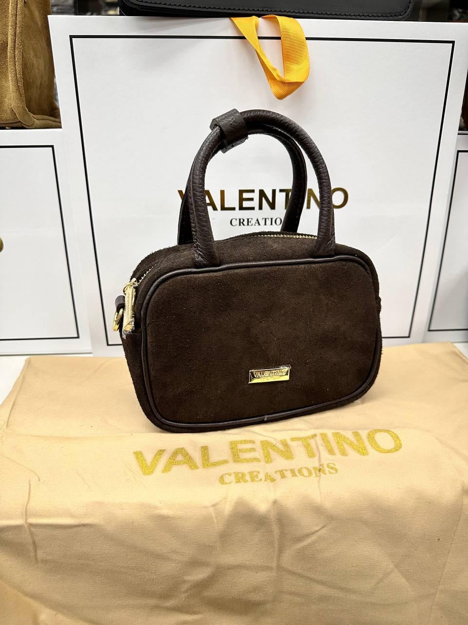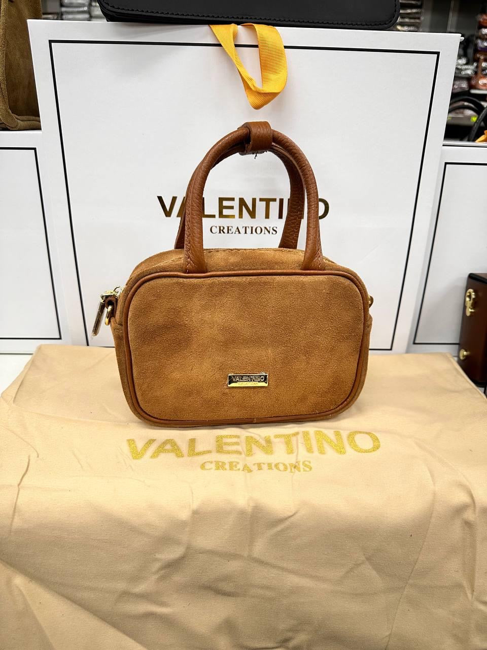 La borsa in pelle scamosciata,presenta doppi manici, una cerniera e una piccola placca con logo sul davanti. È venduta con un sacchetto antipolvere e scatola con il logo del marchio.