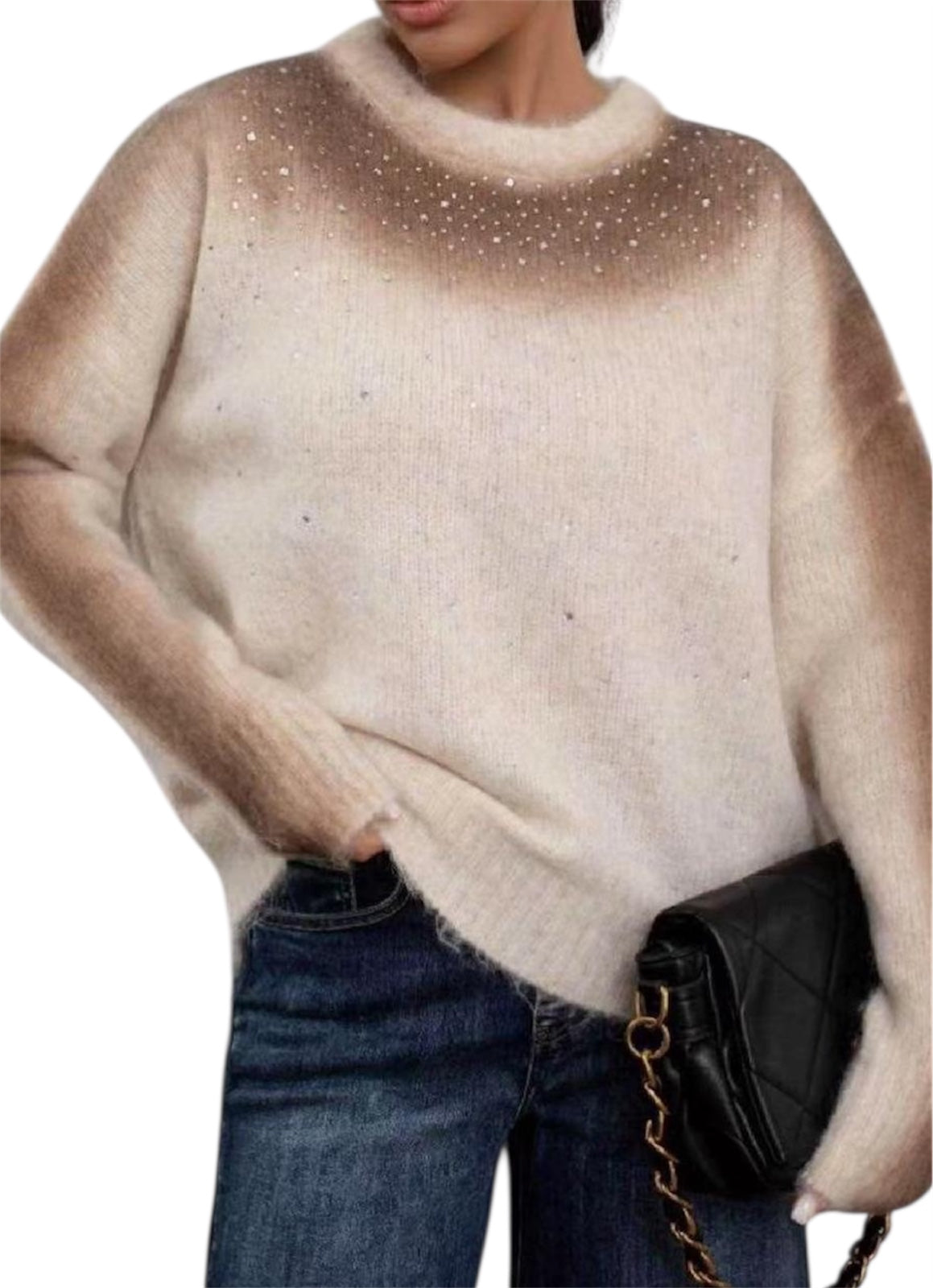 Maglione oversize sfumato con strass, caratterizzato da una lavorazione morbida e pelosa